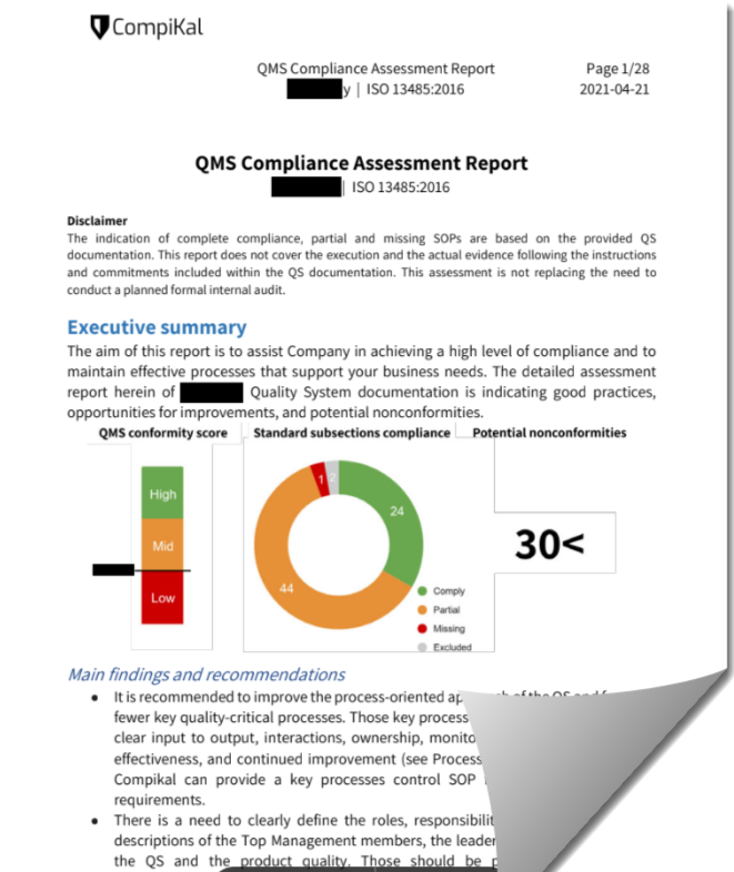 Comprehensive assessment aligned with ISO 13485 & QSR 820 & ISO 14971 & Reporting.